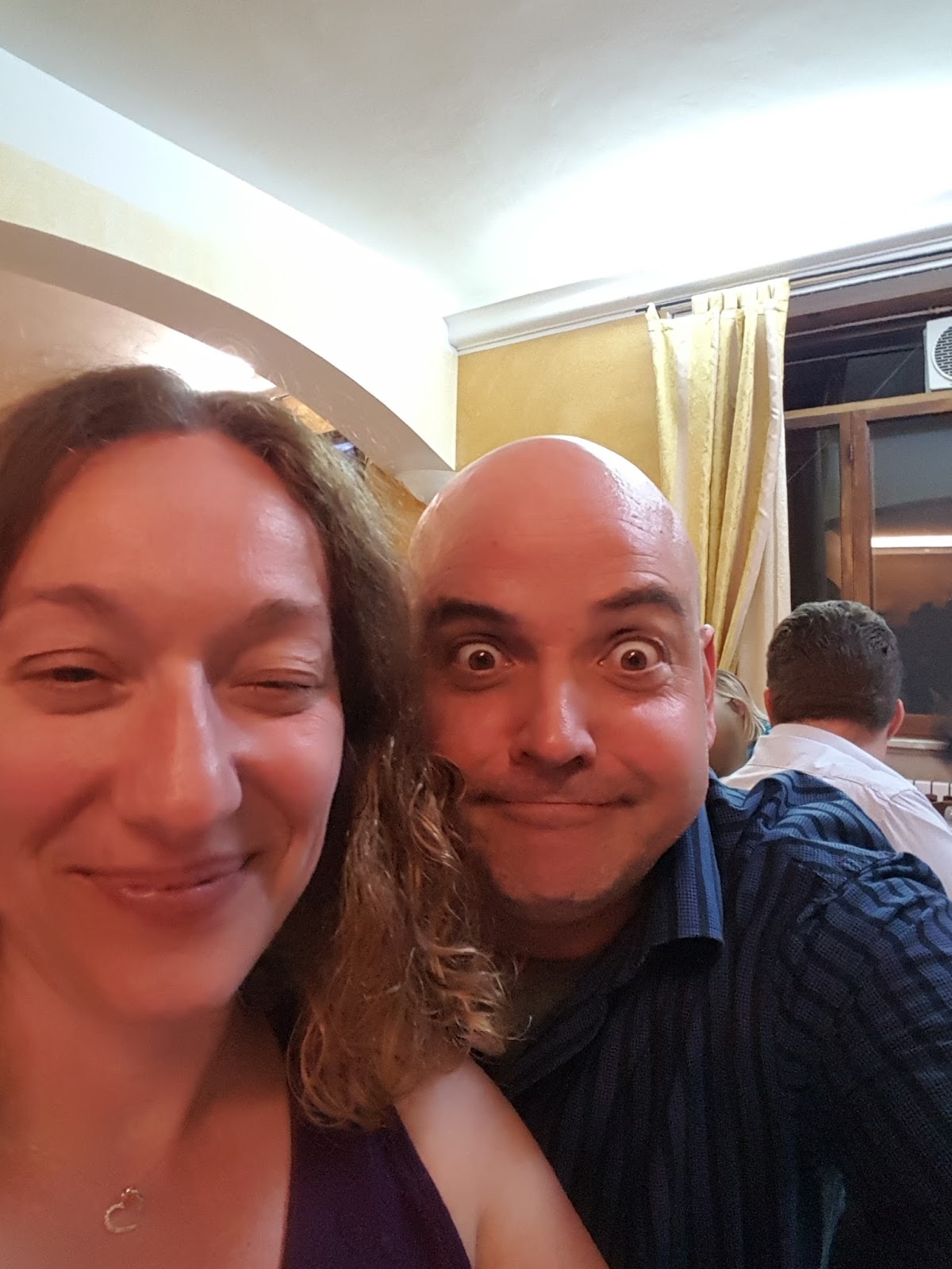 For Friday night, Nic's Mom's cousin, Gerusa, arranged a family dinner. In 3 days she organized 40 aunts, uncles, cousins, kids, relations and partners to meet at a restaurant near Burano. The event turned into an impromptu and belated wedding reception for me and Nic.